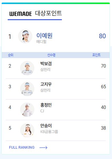 최근 경기가 종료된후 순위조정이 확정된후 해당글을 포스팅하고있으니 참고하셔도 좋습니다. 더 정확한 최신 정보와 전체 순위를 확인하려면 아래 KLPGA 공식 웹사이트 공식기록에서 실시간 확인하실수있습니다.