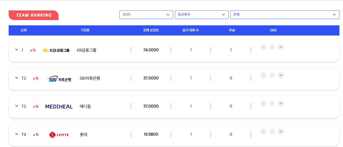 2025년 새롭게 실시된 구단 리더보드 확인하실수있습니다.