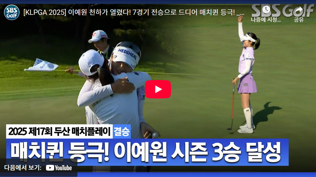 지난 2022년과 2024년 이 대회 결승에 올라 두 번 모두 준우승에 그쳤던 이예원 선수는 마침내 두산 매치플레이 챔피언이 되었습니다. 홍정민, 박현경에게 패했던 과거와 달리, 이번에는 7경기 연속 승리로 정상에 오르며 '매치퀸'에 등극했습니다.