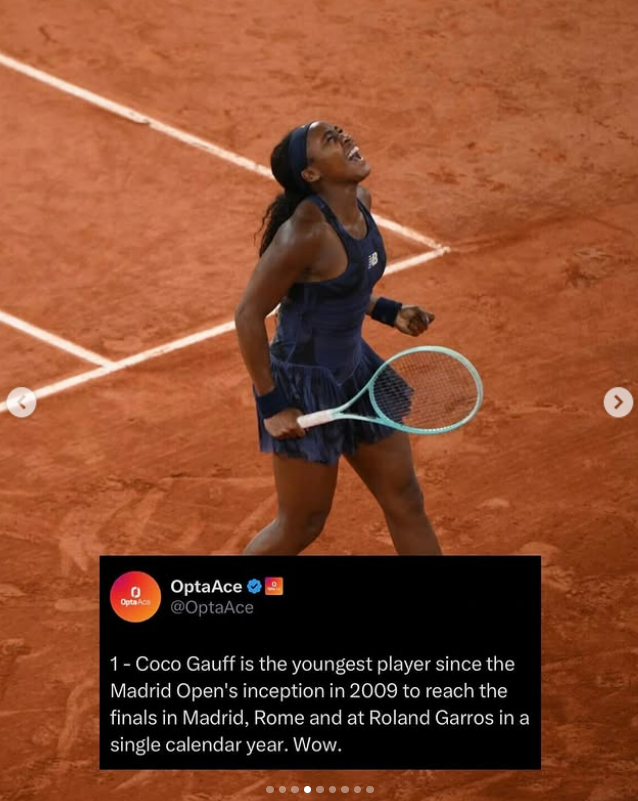 - 마드리드-롤랑가로스 더블: 세레나(2013), 샤라포바(2014), 시비아테크(2024)에 이은 4번째