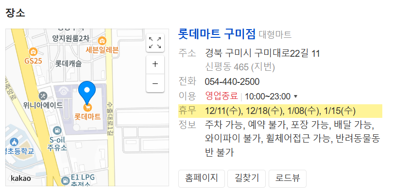 안녕하세요. 오늘은 롯데마트 구미점 12월 휴무일과 영업시간 고객센터 연락처, 지역별 안내 도와드립니다. 롯데마트 방문전 휴무일과 영업시간 꼭 확인하셔서 헛걸음하는 일이 없기를 바랍니다.