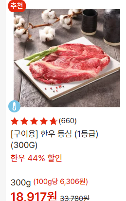 - 정상가: 3,650원 → 할인가: 2,190원 (100g당)