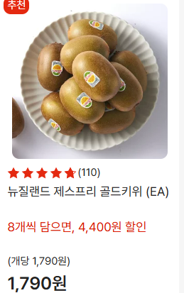 - 제스프리 골드키위: 8개 9,920원 (1개 구매시 1,790원)