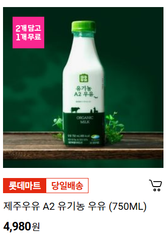 - 서울우유 유기농 우유 (700ml) → 4,980원 (1+1 행사)