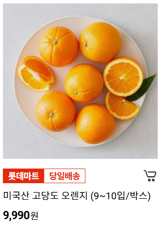 - 미국산 고당도 오렌지 (9~10과/박스) → 9,990원