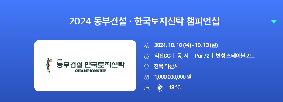 2024 KLPGA 투어의 27번째 대회인 동부건설·한국토지신탁 챔피언십이 10일부터 전북 익산에서 개최됩니다. 이 대회는 변형 스테이블포드 방식으로 진행되며, 총상금은 10억원, 우승상금은 1억8,000만원입니다.