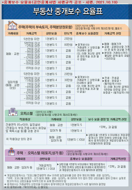 *중개보수 요율표(한국 공인중개사법 협회 공식사이트)
