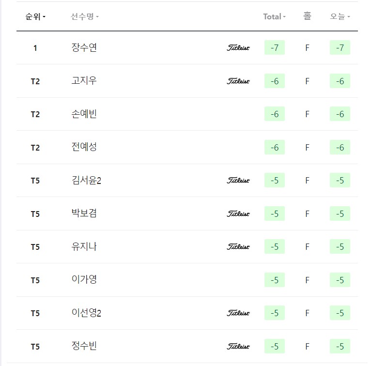 - 단독 선두: 전예성, 고지우, 손예빈(6언더파 66타)보다 1타 앞선 성적