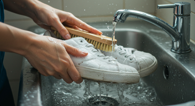 - 부드러운 솔로 세척: 신발 전체를 물에 담그지 말고, 부드러운 솔이나 칫솔을 사용해 닦아줍니다.