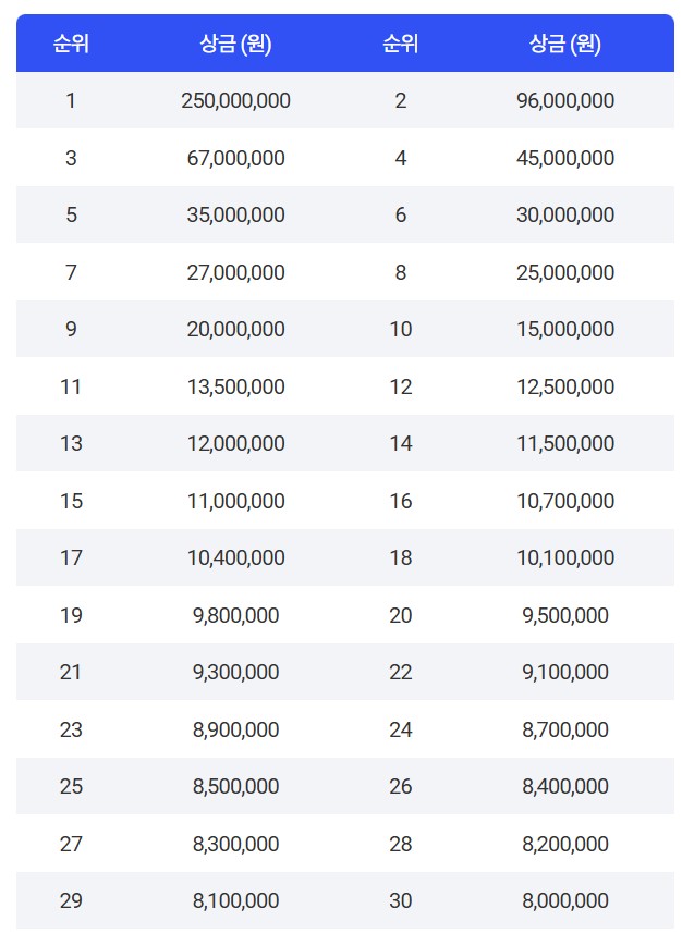 🏆우승상금: 2억 5000만원