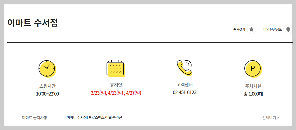📢 이마트 양재점과 청계천점은 3월 12일과 26일 휴무일이니 방문 전 꼭 확인하세요!