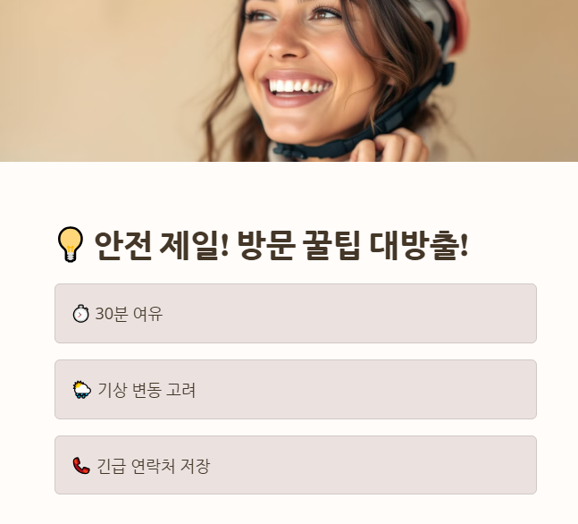 ✔ 돌아오는 시간도 고려하여 안전한 일정 계획!
