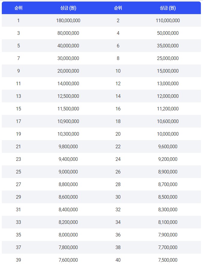순위별 상금