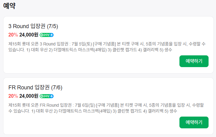 | 주중권 (1R~2R) | 16,000원 | 20,000원 | 20% 할인 |