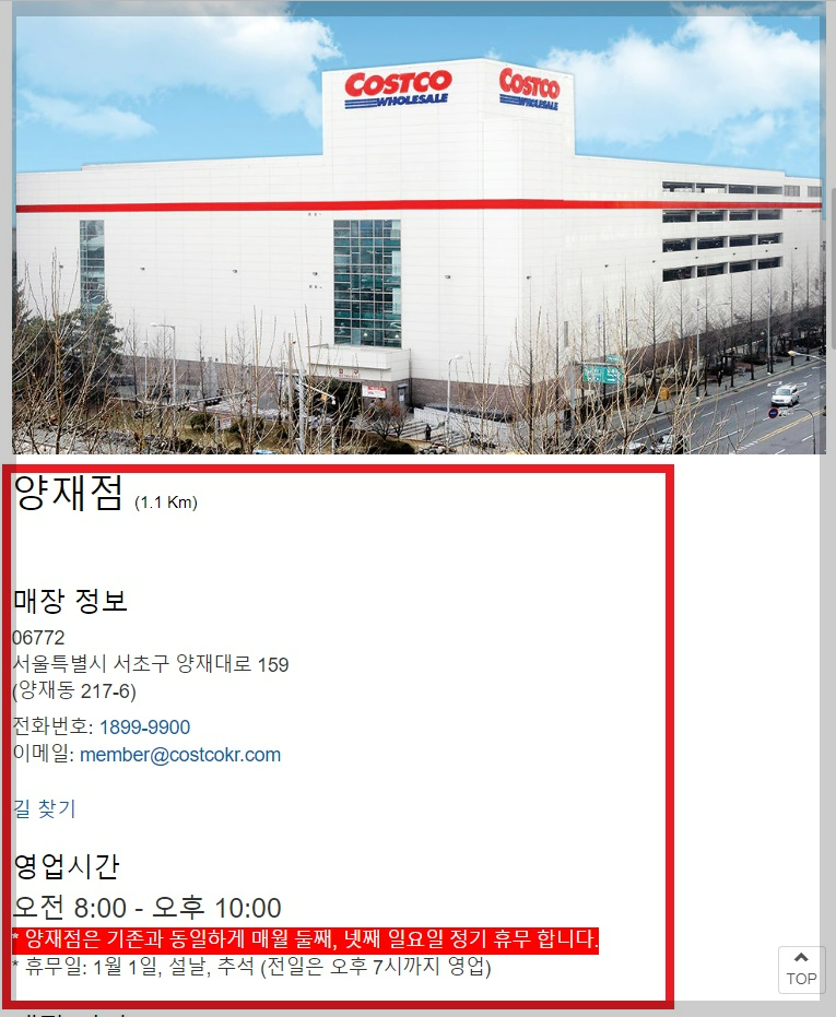 아래 버튼을 클릭하시면 코스트코 지역별 휴무일과 영업시간을 바로 확인하실수있습니다.