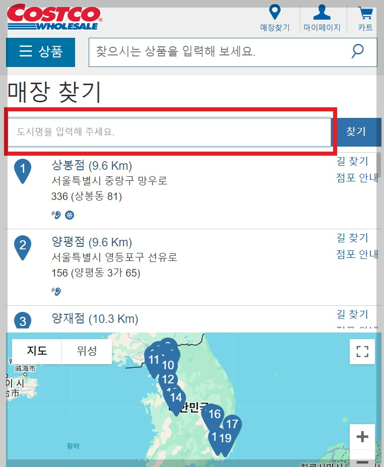 - 매장 찾기(도시)검색