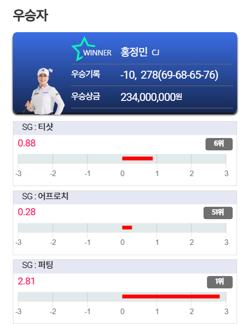 크리스에프앤씨 제47회 KLPGA 챔피언십 홍정민 우승상금 최종순위