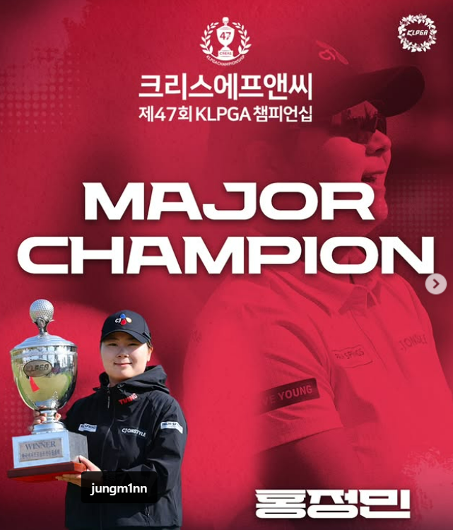 홍정민이 한국여자프로골프(KLPGA) 투어 시즌 첫 메이저 대회 우승컵을 들어 올렸다. 홍정민은 4일 경기도 양주시 레이크우드 컨트리클럽(파72·6천605야드)에서 열린 크리스에프앤씨 제47회 KLPGA 챔피언십(총상금 13억원) 대회 나흘째 최종 4라운드에서 버디 4개, 보기 6개, 더블 보기 1개로 4오버파 76타를 쳤다.