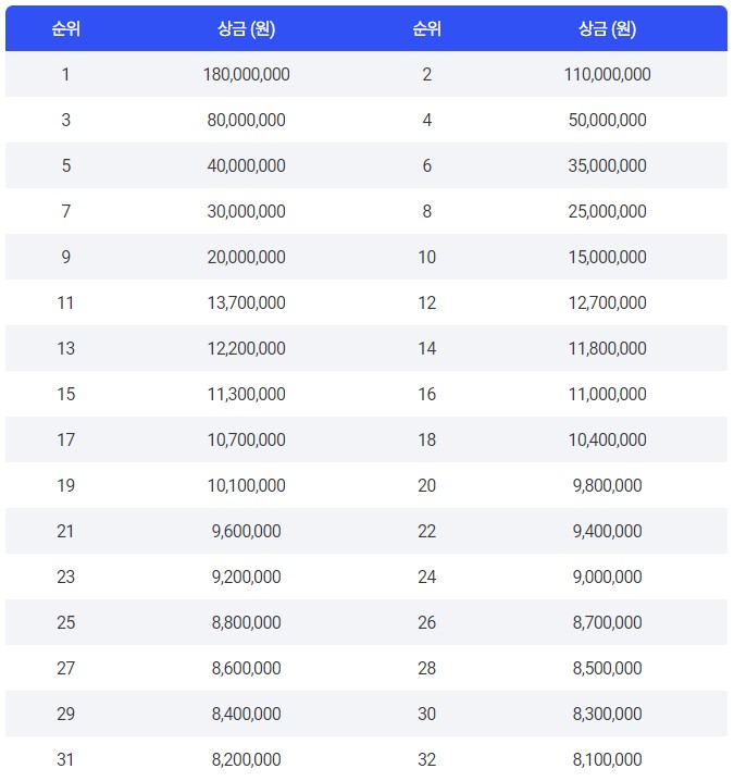 순위별 상금