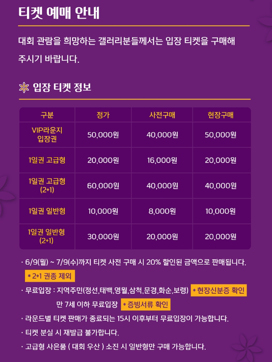 - KLPGA 회원, 시즌권 구매자, 폐광지역 주민: 20% 할인