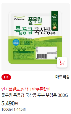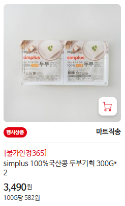 - 심플러스 100% 국산 두부 - 3,490원 (300g 2입)