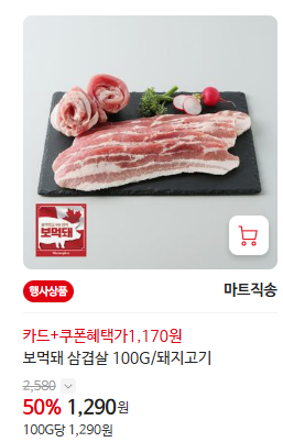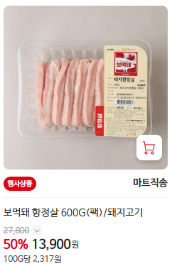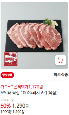 - 보먹돼 전품목 - 50% 할인 (100g 당/돼지고기/닭다리/등)