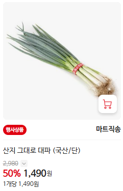 - 대파 - 50% 할인 (비회원가 2,980원 → 1,490원)