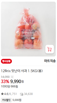 - 맛나이 사과 - 5천원 할인 (4-6과, 비회원가 14,990원 → 9,990원)