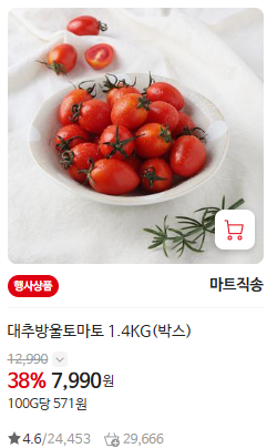 - 스테비아 대추방울토마토 - 5천원 할인 (1.4kg, 비회원가 12,990원 → 7,990원)