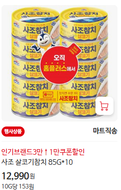 - 사조참치 - 12,990원 (85g×10입)