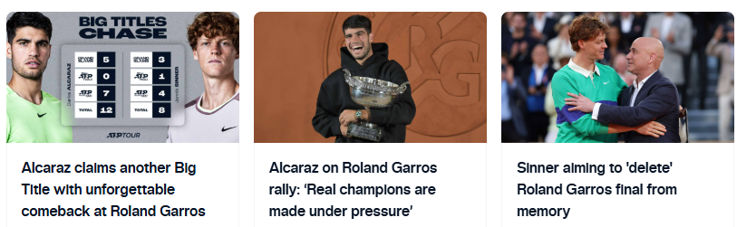 - 알카라즈, 그랜드슬램 결승 전적 5전 5승 (5-0), 무패 유지!
