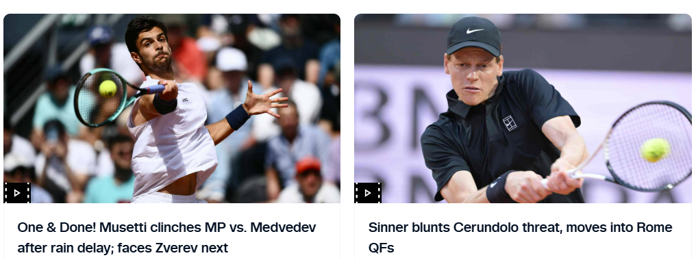 올해 로마 오픈에서 가장 주목받는 선수 중 한 명은 단연 야닉 시너(Jannik Sinner)입니다. 이탈리아의 에이스이자 현 세계 랭킹 1위인 시너는 3개월간의 도핑 관련 출전 정지 후 처음으로 자국에서 열리는 대회에 복귀했습니다. 시너는 프란치스코 세룬돌로(Francisco Cerundolo)를 상대로 7-6(2), 6-3으로 승리하며 8강에 진출했습니다.
