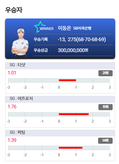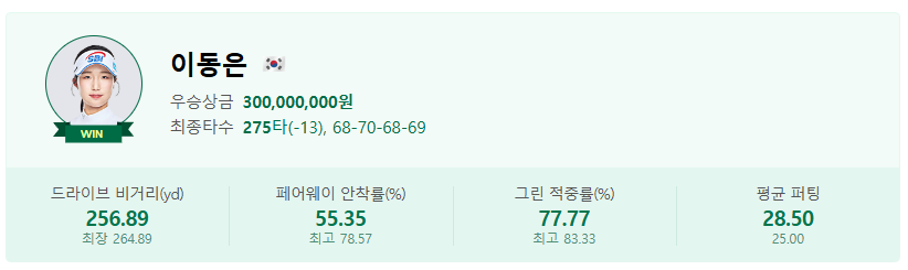 | 1위 | 이동은 | 13언더파 275타 | 3억원 |