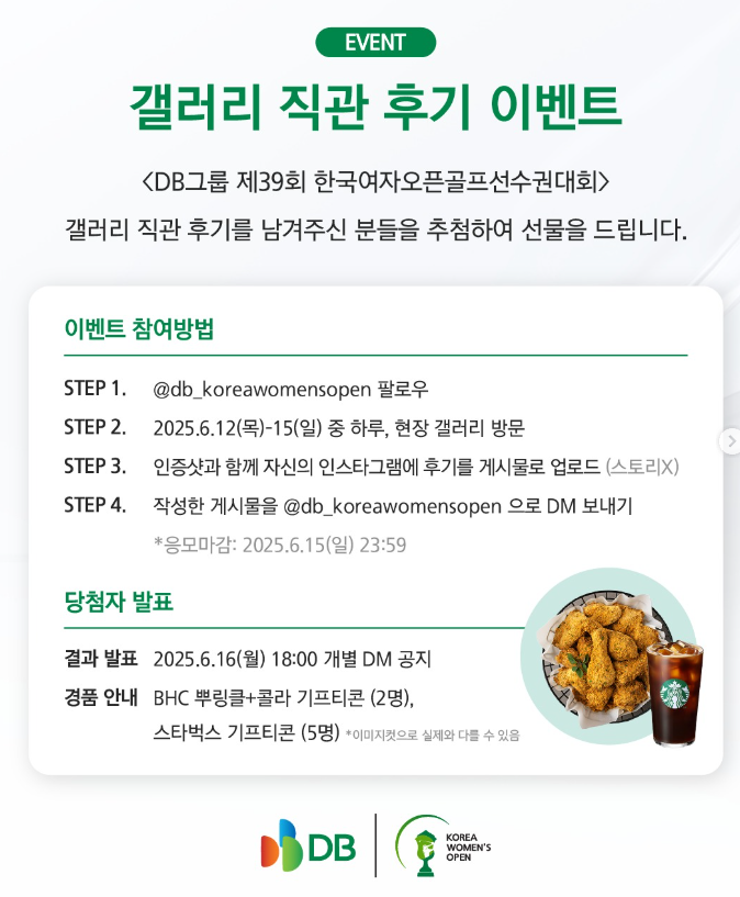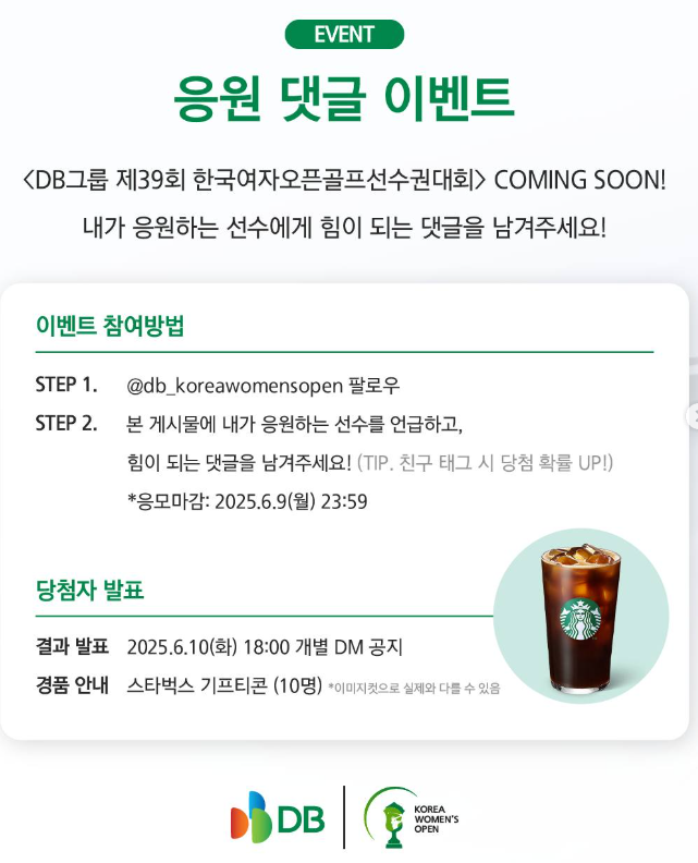 - 참여방법: @db_koreawomensopen 팔로우 + "참여" 댓글