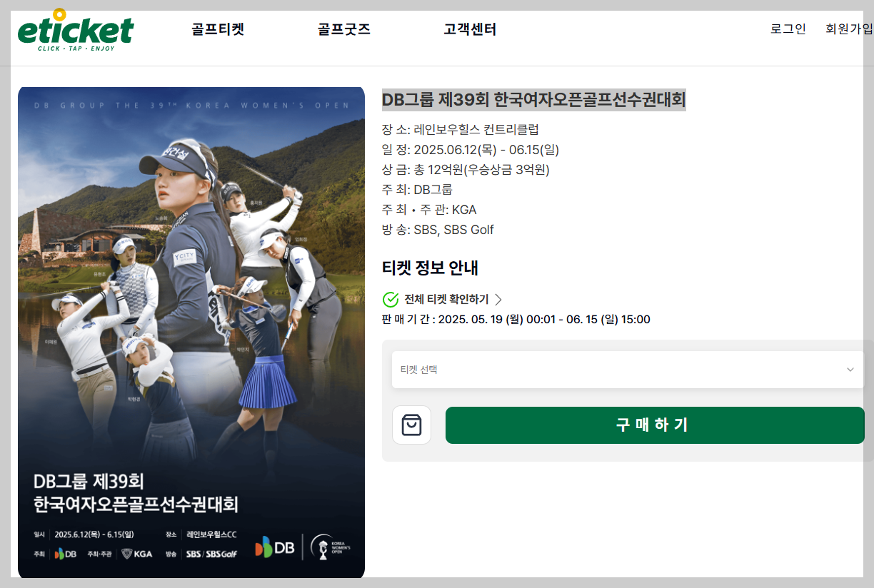 🏆 DB그룹 제39회 한국여자오픈골프선수권대회 티켓 우승상금 순위 주차장 셔틀버스 안내