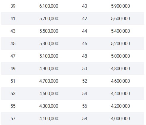 1~58위 순위별 상금 분배표입니다. 더 자세한 사항은 KLPGA 공식홈페이지에서 확인하실수있습니다.