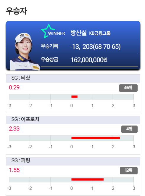 - 통산 3승: 방신실의 KLPGA 투어 통산 3번째 우승 (2023년 이후 1년 5개월 만의 우승)