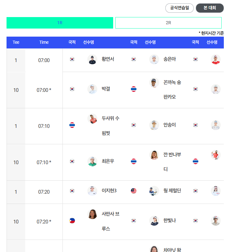 조편성및 홀별 경기시작 시간 확인하실수있습니다.