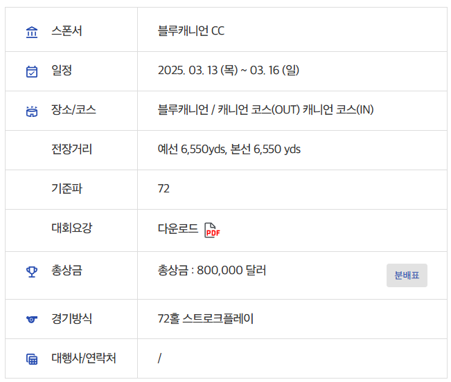 | 대회장소 | 블루캐니언 파72,스트로크 플레이 |