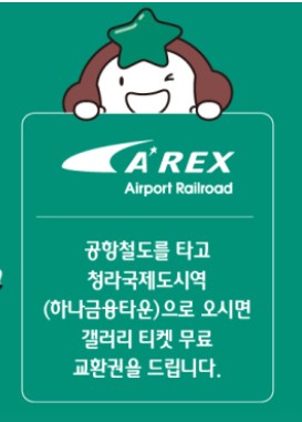 공할철도를 타고 청라 국제도시역 (하나금융타운)으로 오시면 갤러리 티켓 무료 교환건을 드립니다.