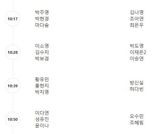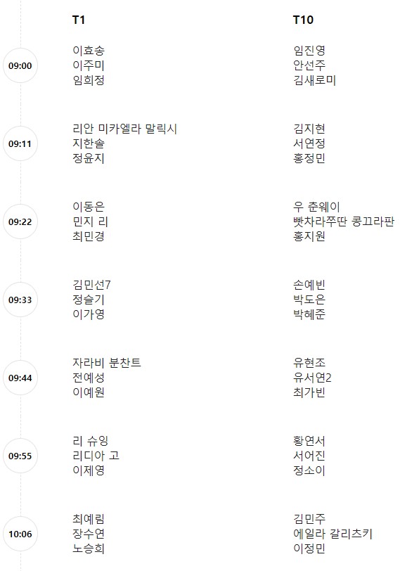 첫 조 티오프 1시간전 ~ 대회 종료후 30분 /10분 간격운행