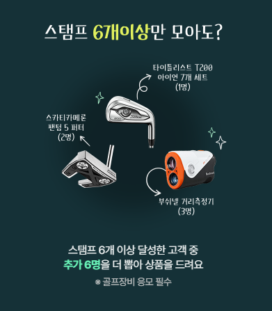 - 스탬프 달성 이벤트는 이벤트 종료일 기준 스탬프 6개 이상 & 골프장비 응모 1건 이상 응모한 고객 대상