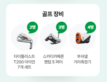 스탬프 6개 이상만 모아도? 스탬프 6개 이상 달성하고 골프장비 응모 시, 추가 당첨 기회가 제공됩니다!