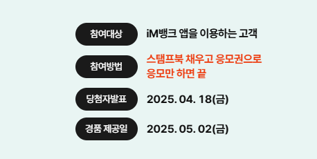 - 참여 대상: iM뱅크 앱을 이용하는 고객 (만 19세 이상)