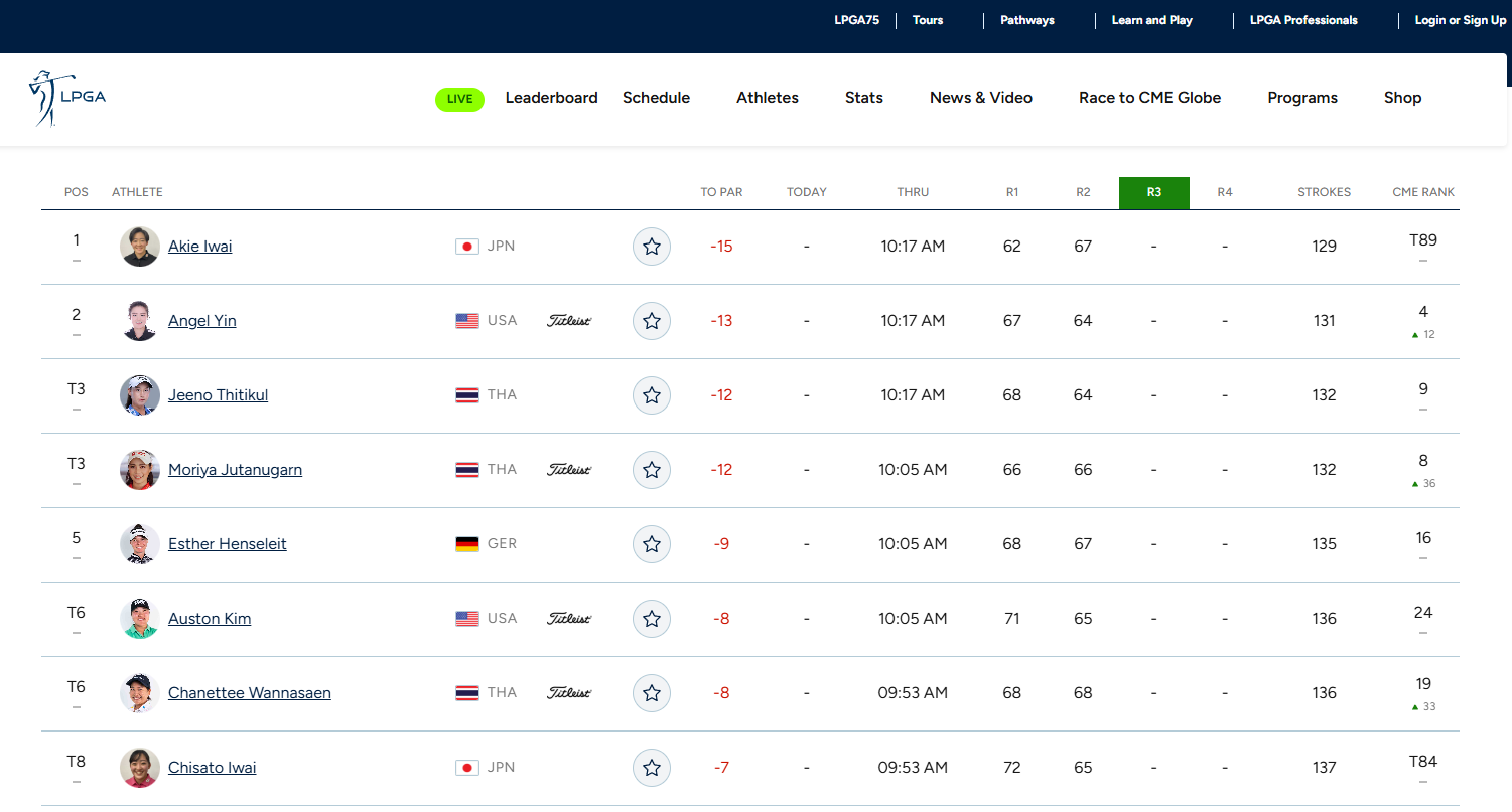 LPGA 공식 사이트에서 대회별 실시간 스코어 확인하실수있습니다.