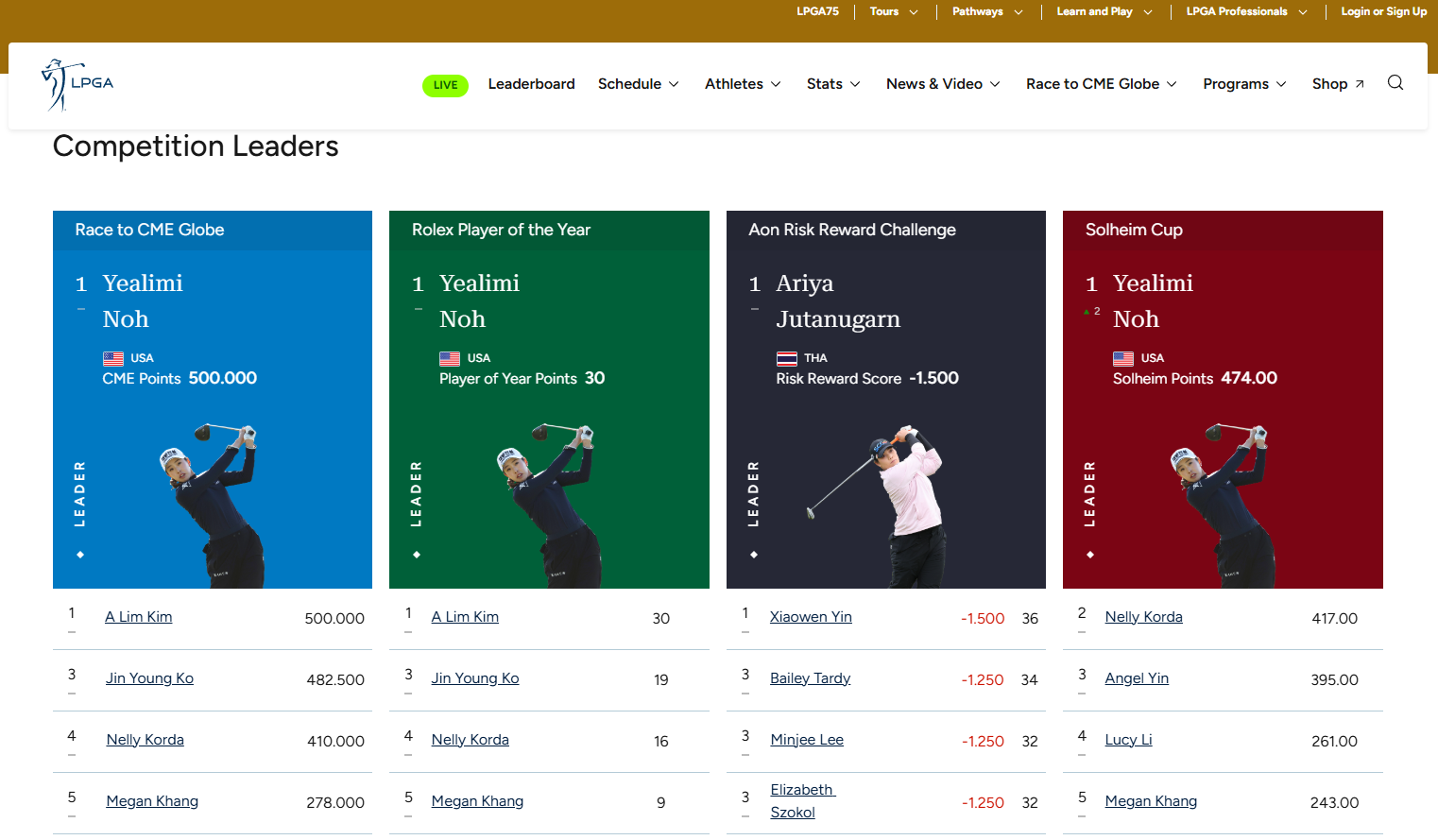 LPGA 실시간 스코어