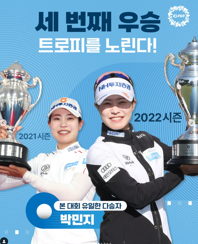 주최사인 NH투자증권 소속이자 본 대회에서 2021년과 2022년에 2연패를 기록한 박민지(27, NH투자증권)도 우승 후보로 주목받고 있습니다. 박민지는 이번 대회 우승 시 KLPGA투어 통산 20승이라는 대기록을 달성하게 됩니다.