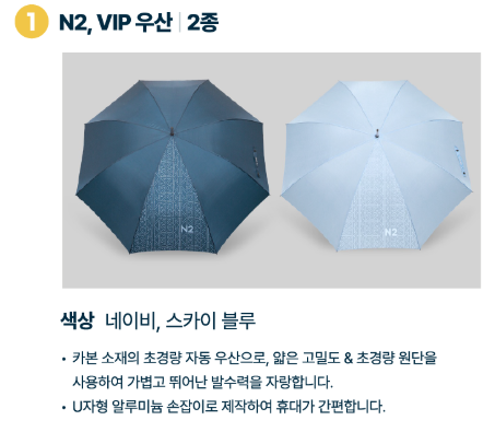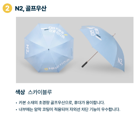 - 초경량 대회우산, 파우치, 골프장갑, N2 타월 등 다양한 대회 굿즈도 판매합니다.
