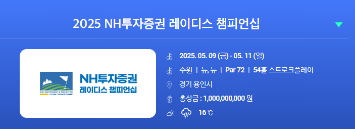 | 대회명 | 2025 NH투자증권 레이디스 챔피언십 |