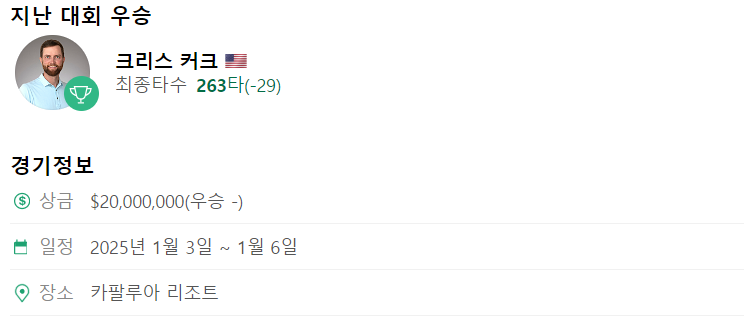 세계 최고의 선수들이 가장 아름다운 코스 중 하나에서 경쟁하는 가운데 The Sentry는 2025 PGA 투어 시즌의 잊지 못할 시작을 약속합니다. 실시간 업데이트와 결과를 계속 지켜봐주세요!